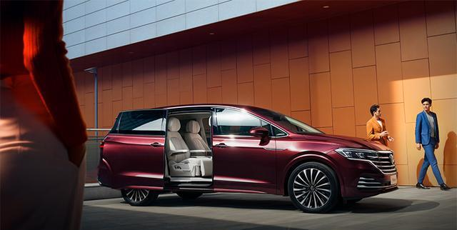 车身侧面,车侧采用侧滑门设计,呈现出前高后低的走势,车顶与尾窗的衔接过渡较为流畅,看上去十分协调。此外,硕大的车身采用了双侧滑门,方便车内乘客上下车。在车身尺寸方面,新车长宽高分别为5346/1976/1781mm,轴距为3180mm。