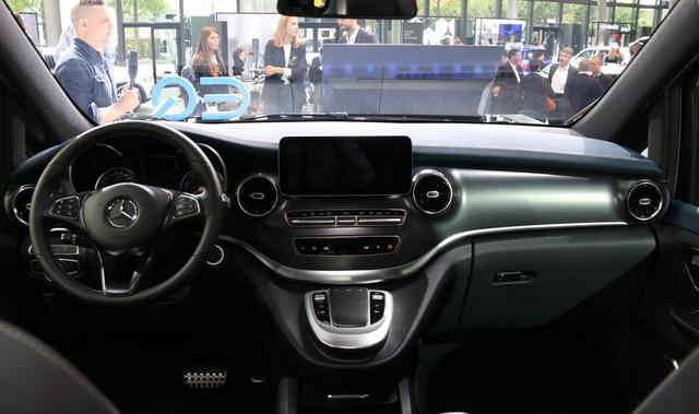 内饰方面,奔驰EQV 采用黑色系内饰。10.25英寸悬浮式中控液晶显示屏搭配三辐式轮圈,增添了科技感。中控台装饰有墨绿色饰板以及大量镀铬饰条,提升了内饰质感。
