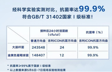 再有“全面抗菌方向盘”,可以有效灭活或抑制细菌生长繁殖及活性,通过对细菌表面的蛋白质进行变性破坏,阻止其嵌入人体细胞,从而达到抗菌作用。