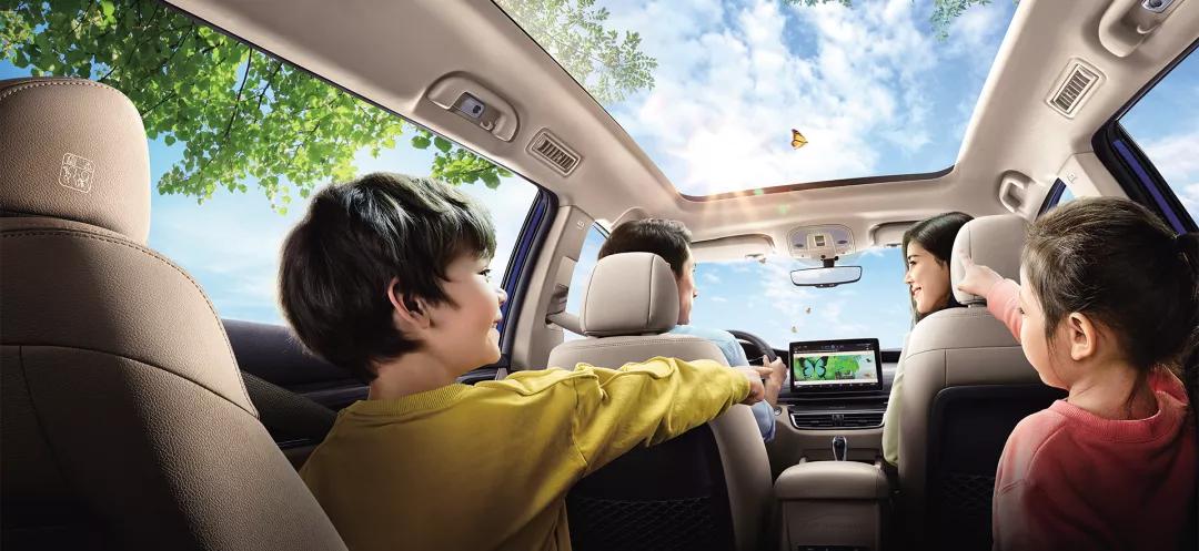 第二排和第三排才是孩子们的乐园。驱车前往郊外,将第二排座椅推到最后,第三排放倒,即可获得非常充裕的乘坐空间和置物空间。