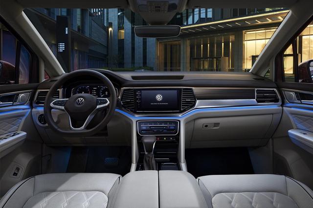 外观方面,新车采用了大众最新的家族式设计语言。前脸为大尺寸多边形进气格栅,中部装饰有镀铬饰条,并与两侧造型狭长犀利的大灯组相连,霸气十足。车身侧面线条流畅犀利,车窗周围装饰有镀铬饰条,搭配多辐式轮圈,增添了运动气息。车尾部分,尾灯组造型狭长独特,并通过镀铬饰条相贯穿,点亮后辨识度高。采用隐藏式排气,整体造型层次感分明。车身长为5346毫米,宽为1976毫米,高为1781毫米,轴距为3180毫米。