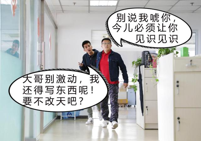 这时候需要正式介绍一下我的同事硕子:95后精神小伙儿,貌不惊人但体内仿佛蕴含巨大能量。平时的爱好就是健身,搏击+撩妹。他的人生信条就是:“年轻有酒须尽欢,莫到年老空悲切!”