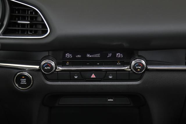 内饰方面,马自达CX-30的中控屏简直是一股清流,丝毫不输格调。另外,分层式的中控台的撞色设计也是别具一格,虽然初看不伦不类,但是看久之后除了功能按键有些掉档次外,其它也还看的过去。