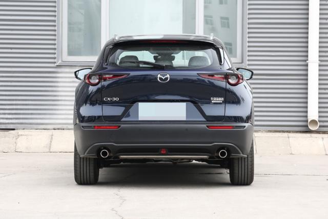马自达CX-30的尾部造型是家族中最为特别的一个,常见的镀铬饰条变少了,取而代之的如同前大灯一样的"鹰眼"尾灯和简单的线条。如此一来,马自达CX-30的辨识度就更高了,简直是见车尾如见车头。