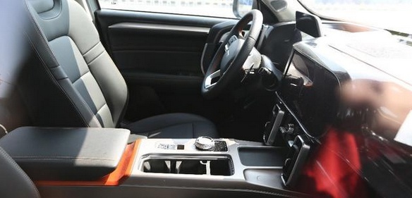 这款全新SUV车型圆筒造型的大灯设计看起来复古且硬派,而且硬气格栅设计得很粗犷,大量使用了硬派的条幅装饰。除了前脸设计硬派之外,这款新车的车侧设计也很硬派,平直的线条设计充满了力量感。内饰设计上,这款全新SUV车型也采用了硬派造型设计。同时,车内还配备了悬浮式的液晶仪表,从曝光图上来看,科技感很不错。