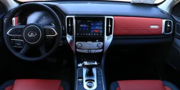 车身尺寸方面,长城炮皮卡越野版的长/宽/高分别为5437/1958/1893mm,轴距为3230mm;其中货箱栏板内尺寸长/宽高/分别为1520/1520/538mm。可以说长城炮皮卡越野版无论是乘坐空间还是储物空间,都有优势。内饰设计方面,长城炮皮卡越野版采用黑色/红色撞色处理,同时细节处的缝线以及菱形格元素的点缀,使得内饰看起来更加时尚,值得点赞。