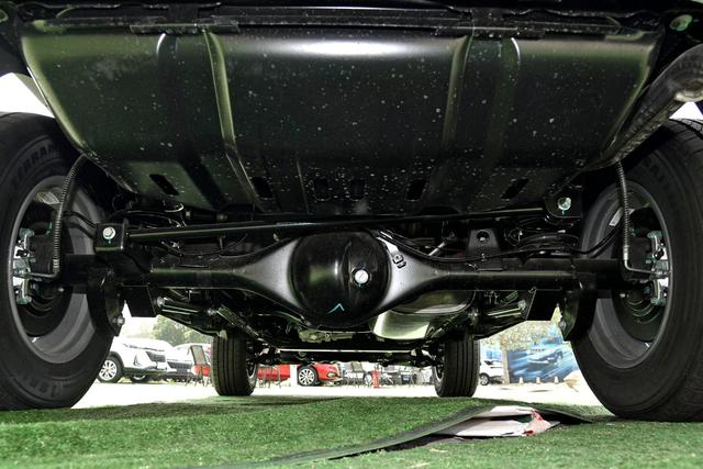 底盘方面,采用了前双横臂螺旋弹簧前独立悬架+后五连杆螺旋弹簧非独立悬架的组合。此外,该车还采用了非承载式车身,拥有220mm的离地间隙,配合37°接近角、31°离去角以及23°纵向通过角,拥有不错的通过性和越野能力,最大跨壕宽度500mm,最大涉水深度超600mm。