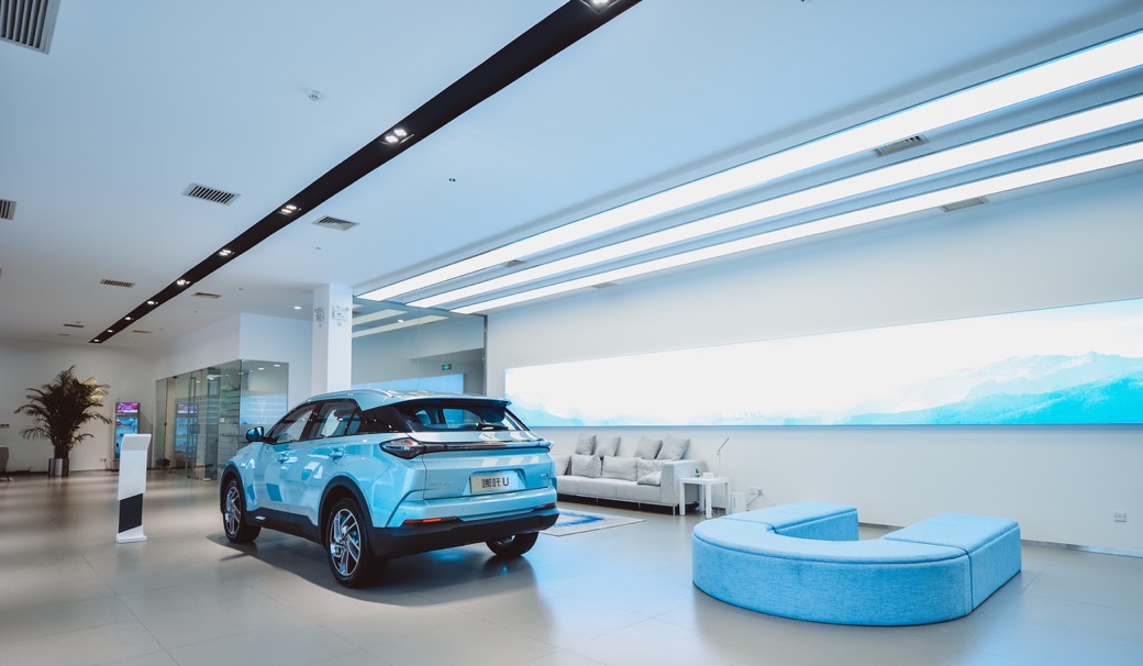 北京哪吒汽车体验中心位于北京王四营339号,占地面积近万平米。整个室内空间艺术氛围营造恰到好处,通过时尚的装饰及完善的体验区可以感受到哪吒汽车的品牌及产品魅力。店内采用大面积玻璃和天青蓝色幕墙装饰,营造出自然与科技和谐共享的意境,而最惹人注目的还是摆放在体验中心C位的纯电SUV哪吒U。