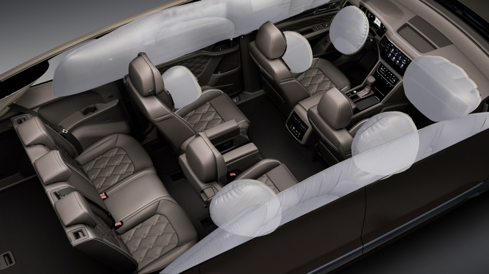 威然全车配备了8安全气囊,值得一提的是,威然的侧面头部气帘从A柱延展到D柱,以长达2.8米的头部气帘为驾驶员、前排乘员和后排外侧座椅乘员提供保护。发生碰撞时,一二排侧气囊会与头部气帘同步触发,在碰撞发生的一侧展开,为保护乘员安全再加一重保障。