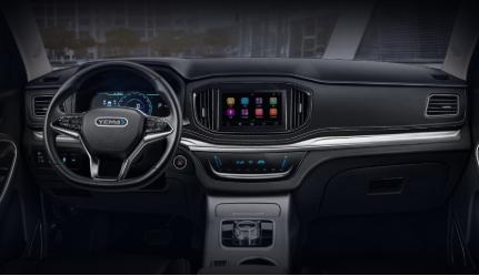 内饰方面,整体以黑色为主色调,皮质包裹的中控台有着很好的触感。三屏式的设计、旋钮式换挡设计和多功能方向盘的组合,给车内整体增添了科技感。配置方面,新车配备了一键启动、无钥匙进入、全景天窗、倒车雷达、电子手刹、手机互联以及语音智能互联系统等多项实用功能。
