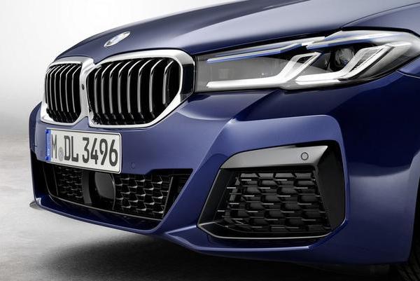 新5系的进气格栅造型开始向宝马7系 (配置|询价)靠拢,不过也仅限于造型,至于尺寸还是未变,毕竟宝马7系的"双肾"实在太大,用在新款宝马5系上并不太协调。另外,经典的"天使眼"大灯被取消,取而代之的是科技感和功能更强大的"L"型大灯组。