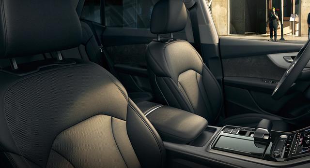 值得一提的是,奥迪Q8装备的高清矩阵式LED大灯将LED光源分割成若干个独立单元,根据目视摄像头以及雷达探测结果将对LED光源进行单独控制。在行驶状态下车辆会根据雷达扫描结果自动避免光源直射对向行驶车辆,大幅度提升夜间行车安全性。内饰的设计中,奥迪Q8为新一代的家族化设计语言。T字型的中控面板大面积由黑色钢琴面板覆盖,在视觉效果中营造了简约感。再者,微倾斜于驾驶者的斜度设计与多种几何直线元素共同塑造了富有现代工业气息的中控面板。同时在材质的选择上,奥迪Q8还拥有丰富的搭配组合。并且在车门与顶棚的设计中,拥有大量的Alcantara材质,同时满足优秀的手感与豪华气息。