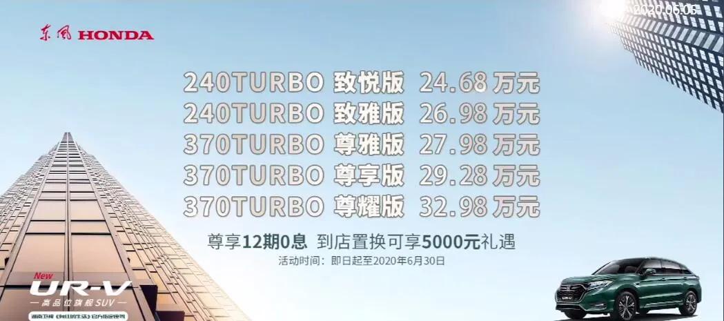 6月5日晚,东风本田旗下全新UR-V (配置|询价)正式上市,共计推出5款配置版本,售价区间为24.68-32.98万元。新车在动力上继续搭载1.5T和2.0T两款动力,不过在外观设计和配置上有了大幅的升级,可谓诚意十足。
