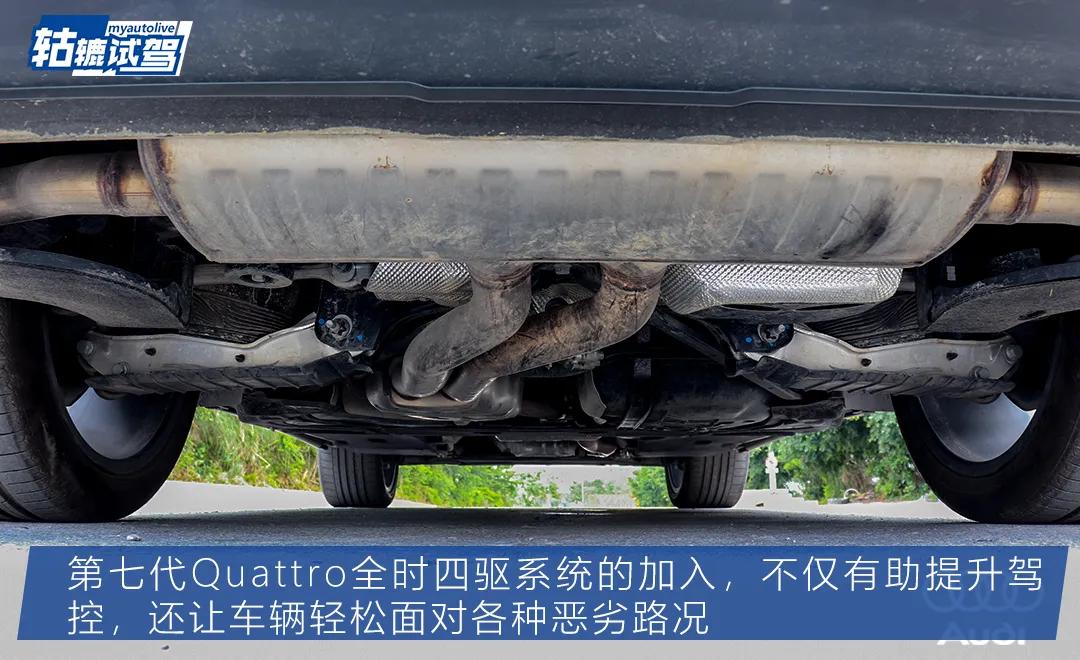 操控上的精髓其实在于奥迪Q8的底盘上,第七代Quattro全时四驱系统的加持,让车辆前后轴的动力分配为40:60,极限情况下甚至能在15:85到70:30之间切换,无论你如何激烈驾驶,奥迪Q8都能将动力恰到好处地分配到前后轮上,甚至面对一些恶劣的路况,这套四驱系统也有助车辆轻松通过。