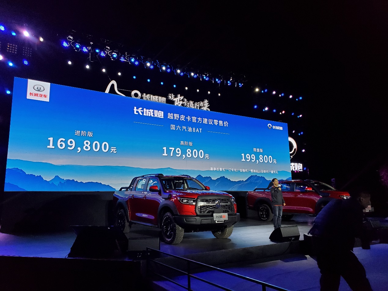 长城炮 (配置|询价)越野皮卡于6月5日正式上市,目前推出三款汽油版车型,共分为四驱进阶版、四驱高阶版与四驱限量版,售价16.98-19.98万元,具体车型对应价格请看下图。