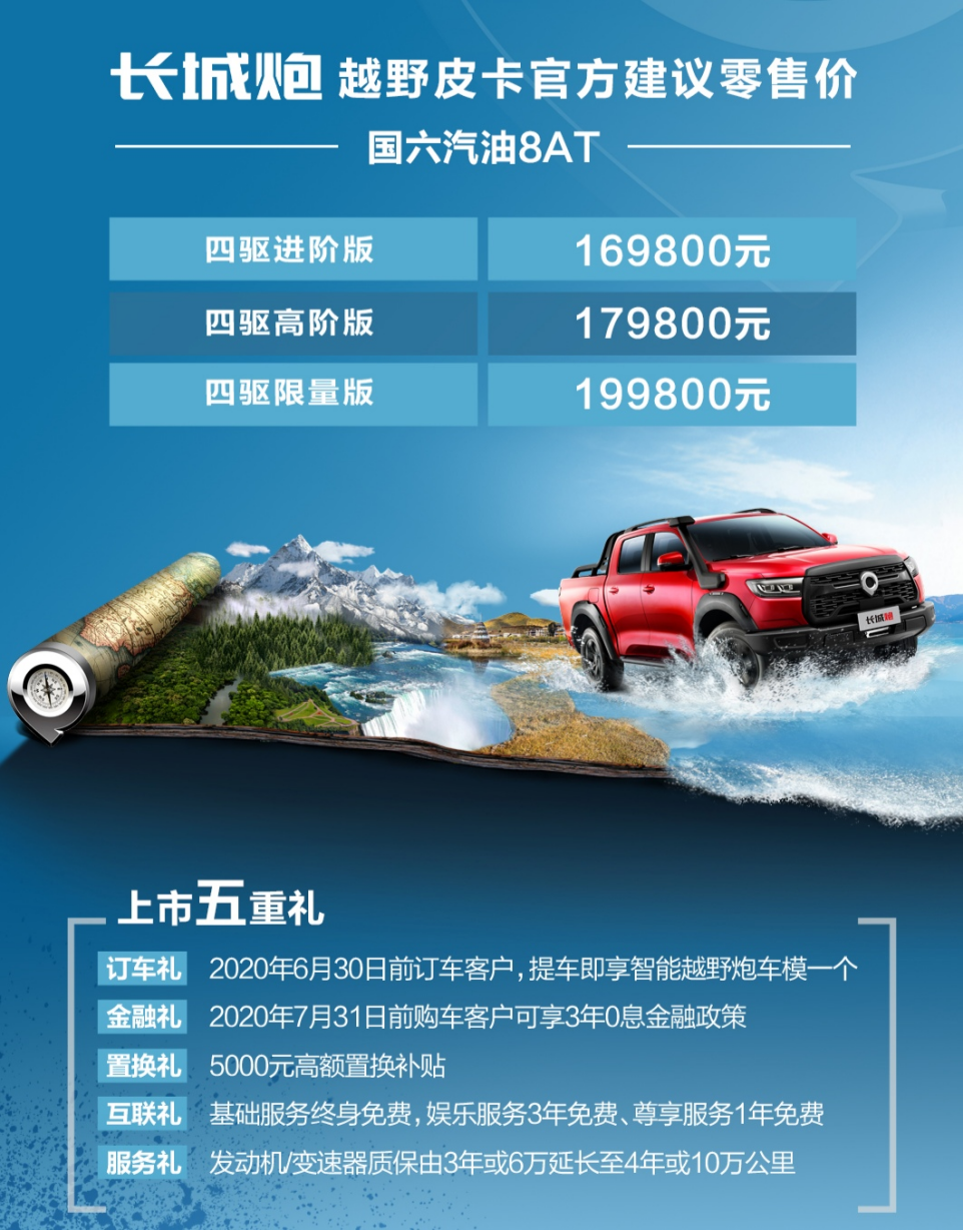 然而刚刚过去了不到两个月,越野炮就正式上市了。作为长城炮 (配置|询价)的第三类细分版本,越野版车型的价格肯定是要高于乘用版与商用版的,不过16.98~19.98万元的价格确实给了不小的惊喜。