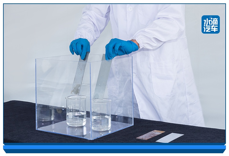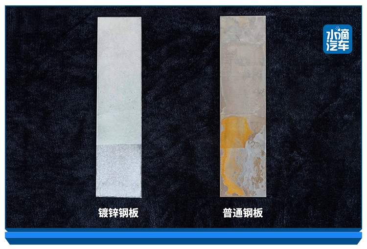 将镀锌钢板与普通钢板分别置于8%盐酸溶液当中,搁置20s后取出,清洗后再静置20分钟,我们可以通过图片明显看到,普通钢板呈现出橙色锈蚀,但镀锌钢板却未见丝毫锈迹。