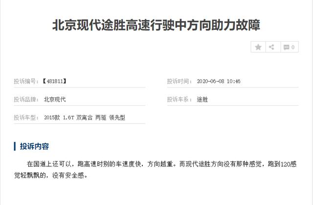 北京现代的名号可以说在中国无人不知无人不晓的汽车大品牌,而据我们近期了解到,北京现代汽车有非常多的质量问题。今日,我们从车质网了解到,北京现代汽车的主流SUV车型北京现代-途胜 (配置|询价)造重大投诉,投诉原因为高速行驶中方向助力系统故障。