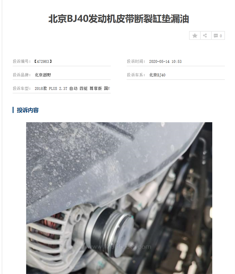 近日,有车主投诉2018款 PLUS 2.3T 自动 四驱 尊享版 国V购车2月后发现发动机漏油,问其4S店,4s店答复这属于通病,维修也是更换发动机缸垫而且更换发动机缸垫还可能漏得更严重。5月4号发动机皮带图片断裂,又问其4s店给的答复是皮带不给予索赔。