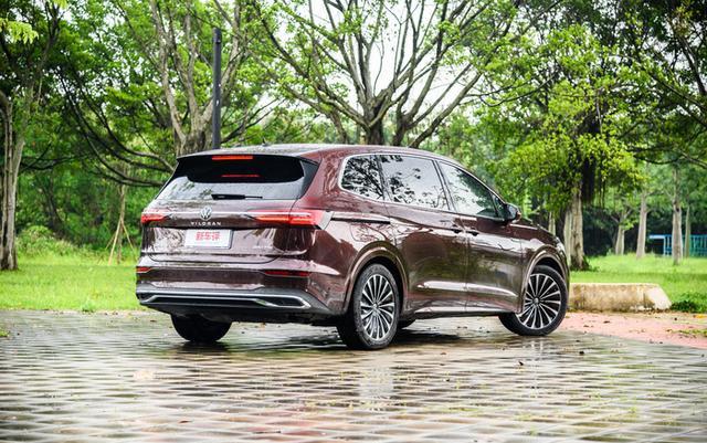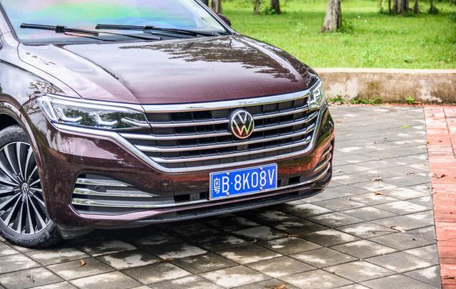 但是,车身庞大并没有带来臃肿的感觉,因为威然的整体车身轮廓和强调空间的商务MPV不一样,在它身上你可以找得到长车头、斜A柱、小溜背这些设计,所以无论是侧面还是后方,威然的车身线条是很舒畅的。