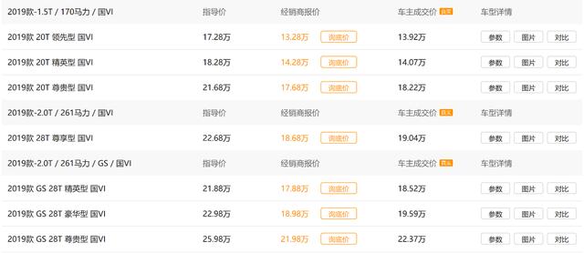 据悉,现款别克君威车系分为君威和君威GS,其中君威的指导价为17.28-22.68万元,而君威GS的指导价则为21.88-25.98万元。目前看来,君威的优惠力度要大些,已达到4万元,其中2019款20T的领先型已跌至13.28万元。君威GS由于起步价较高的缘由,即便是有较大的优惠也超过了10-15万元的购车预算,但只要预算充足君威GS也是个不错的选择。当然,现在段朗逸的优惠力度也挺大的,经销商的折扣普遍在于2-3万元左右,但无论如何君威的产品力摆在哪里。