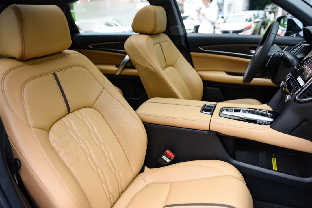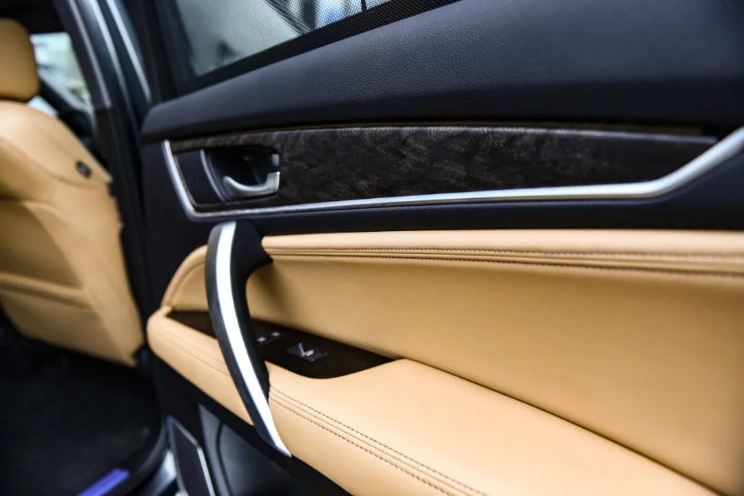 空调出风口加入了亮色镀铬装饰,配上木纹饰板以及大量真皮包裹,营造出强烈的豪华氛围。