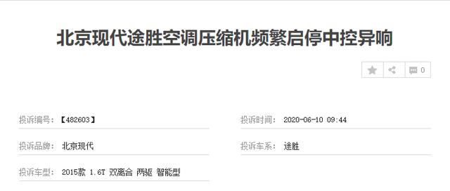 北京现代作为曾经在国内乘用车产量最快突破900万辆、连续4年实现年销量破百万的大车企,近两年的销量却有了明显的下滑,汽车的质量缺陷便是造成这一结果的重要原因。近日,我们从车质网的相关信息了解到,北京途胜 (配置|询价)空调压缩机频繁启停并且中控有异响的问题遭到了用户的投诉。