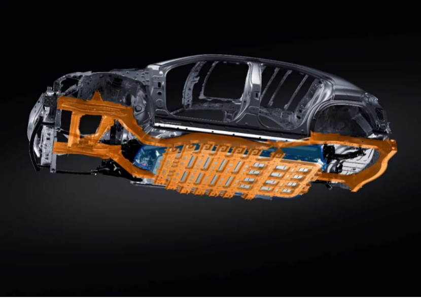 冷风管:锂离子电池包四方形(基本上现在电动车都是类似的设计,目的是效能最佳),高电压电路设置在电池包中央,并用冷风管把电池包内部包围起来的构造形成缓冲区来保护电池单体和高压回路。