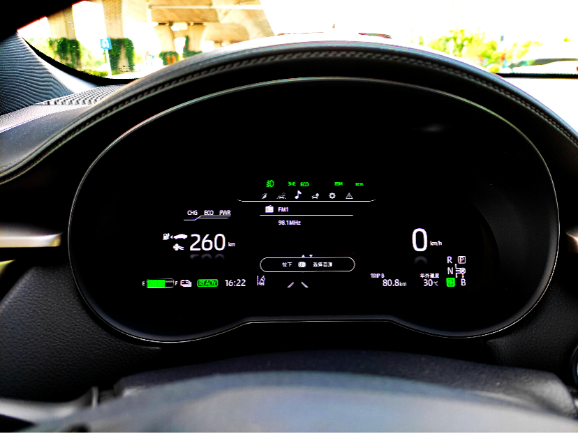 不过动力体验上,我们开了一圈汽油版,开了一圈纯电,老实说加速上确实区别很大,尤其是中间一段,时速30-100的加速路段,电车明显更快,没有汽油车那种循序渐进,也听不到发动机气喘吁吁的声音。
