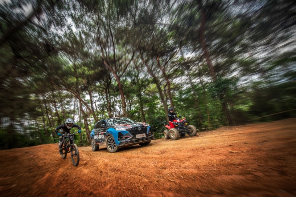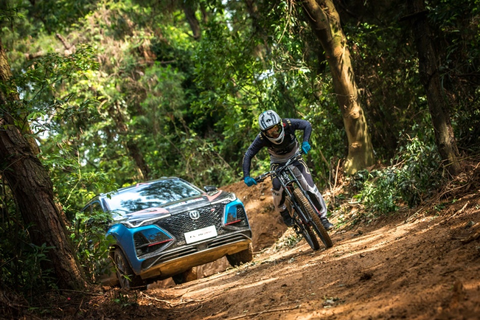 赛道最后的几公里,CS75PLUS与山地车赛道达到高度重合,比赛也进入白热化阶段。关键时刻,一位神秘人一辆ATV全地形四轮越野摩托突然闯入赛道,加入汽车与自行车大战。凭借极强的通过性优势,ATV全地形四轮越野摩托,意图拦截华婷婷驾驶的CS75PLUS。而这个神秘人正是曾连续三年获得全国越野摩托车及ATV双项总冠军、2019CESS国际耐力赛最高组别冠军、2019MXGP世界越野摩托车锦标赛中国代表队选手——邓连松。