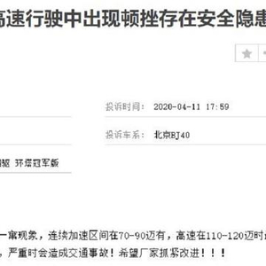据车主描述在高速路段,速度为70-90迈区间,有着明显的窜动行为更在110-120迈区间极为明显,有着很大的安全隐患问题。