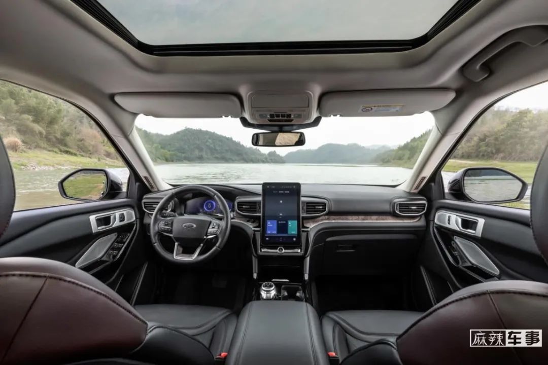 不仅如此,全新第六代福特探险者还充分考虑中国消费者对于豪华感、品质感的诉求,采用T字形的中控台造型,内饰大面积采用皮质材料包裹,连经常被忽略的中控台也没有放过,全系标配的12.8英寸高清中控大屏、L2级福特 Co-Pilot 360TM智行驾驶辅助系统,以及升级版SYNC+智行信息娱乐系统,这在同级别车型中是非常罕见的,就算与擅长营造豪华氛围的奔驰相比,全新第六代福特探险者都不落下风。