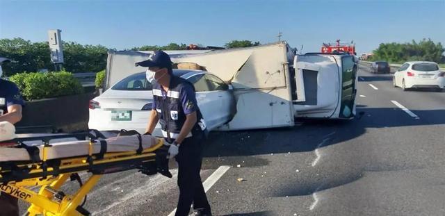 近期,在中国台湾嘉义,一辆 Model 3 (配置|询价) 在高速公路上撞上了一辆侧翻的大货车。