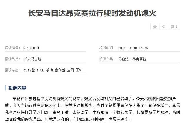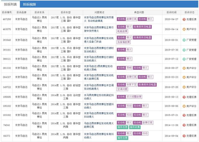 长安马自达不说家喻户晓,但起码算大品牌,有着炫酷的外观吸引这无数群众,但在汽车质量问题上却迟迟无法做出改变。近日,我们从车质网得知,长安马自达屡遭投诉,投诉种类之多,但最主要问题还属发动机问题最多,那么我们一起来看看究竟是怎么一回事。
