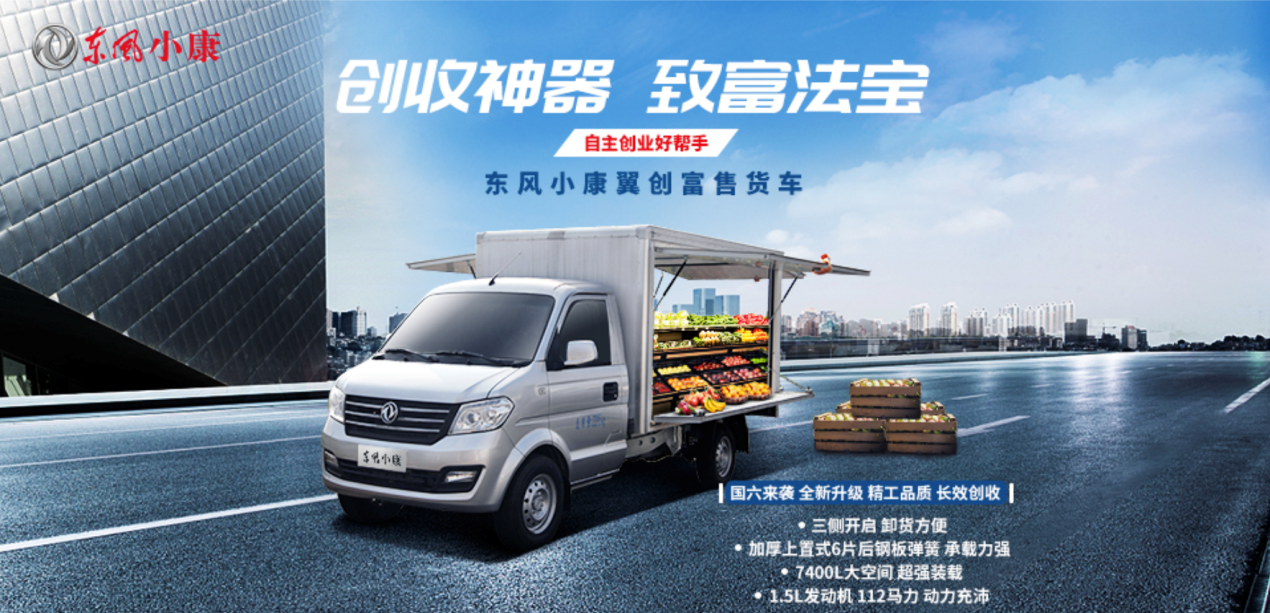 以排头兵东风小康C55翼展创富售货车为例,拥有占地面积小、移动快、三侧车门可多角度展示商品等优势。其货箱采用高强度的彩钢夹层,确保安全稳固;7400L的超大容积货箱远超同级,空间够大更能装;搭载1.5L发动机,能够实现112马力的最大功率,可以多拉快跑。同时,这款明星车型满足国六标准,具备精工品质,现已在官网接受预订,预售价格仅为5.48万元,堪称是老百姓的创业神器。