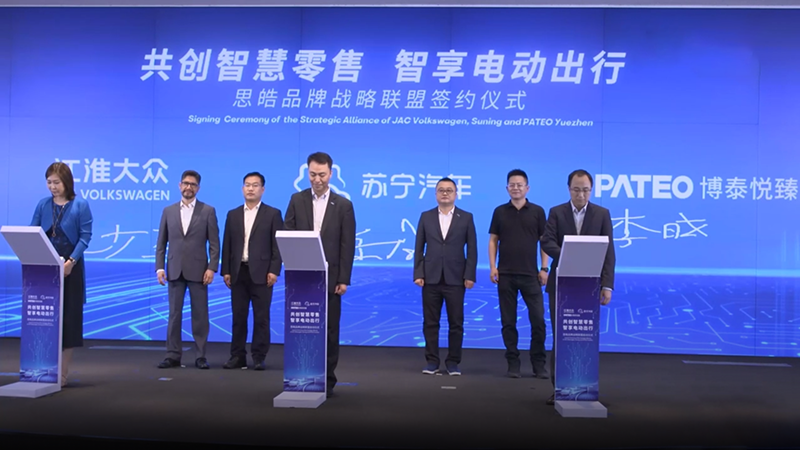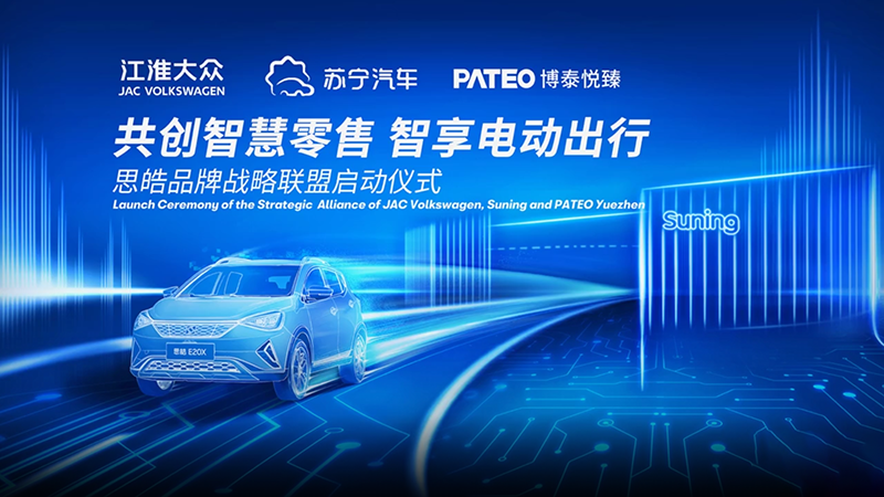 6月10日,大众汽车集团旗下新能源汽车合资企业江淮大众与苏宁汽车、博泰悦臻共同宣布启动思皓品牌战略联盟,将基于新型场景化的销售模式,打造电动汽车智慧零售,并在多个领域展开业务合作。