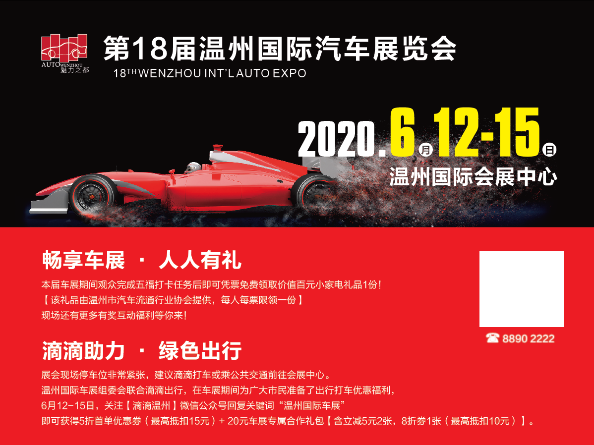 6月12日,第18届温州国际汽车展览会(简称“温州国际车展”)将于6月12-15日在温州国际会展中心举行,本届展会由温州市汽车流通行业协会、浙江德纳展览有限公司共同组办,龙湾区商务局支持,以“让变革走进生活”为主题,联合各大参展品牌为广大市民打造一场集消费、娱乐、文化为一体的大型汽车嘉年华,让广大购车族畅享“惠买车·更省心”的消费新体验。