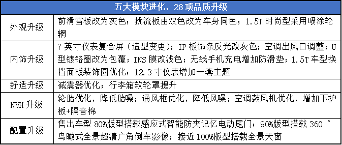 此次升级,全新一代瑞虎8就外观、内饰、舒适、NVH、配置5大模块做出28项品质升级,旨在为消费者带来更好看、更舒适、更超值驾乘体验,给予消费者更高价值享受。