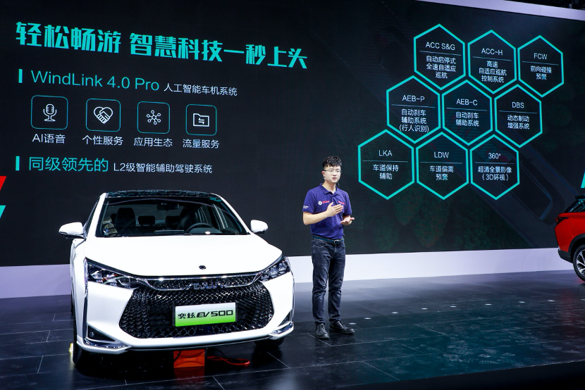 愉悦智联,畅享智能汽车生活:在智能化配置上,风神奕炫EV500搭载了全新网联式专属智能座舱——WindLink 4.0 Pro人工智能车机系统,以及L2级智能辅助驾驶系统,尽享愉悦智联的车机互动与更加愉悦、智能的出行体验。WindLink 4.0 Pro人工智能车机系统能够实现AI智能云端语音识别, 具有免费车联应用流量+车载4G高速热点智睿交互、手机APP远程控制+OTA在线升级、全新自由行导航系统等构成其智慧生态的智慧互联功能。而L2级智能辅助驾驶系统则配备了ACC-S