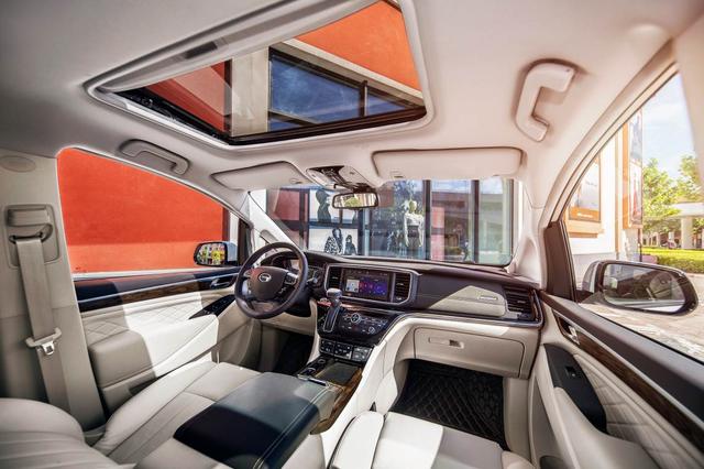 外观部分,新车前脸采用了全新"震天翼"家族化的造型设计,竖向格栅列阵排布配合两侧犀利的大灯以及底部"U"型下包围,看上去十分霸气。车身侧面,新车沿用了侧滑门的开启方式,经过黑化处理的B、C、D柱也是尽显商务风格。另外,较低的离地间隙,也让它看上去更加稳重。