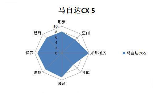 马自达CX-5的风格和锐际是相当类似的,它在驾驶相关的部分也获得了非常高的分数,但是它明显比锐际更任性也更偏激一点点,它没有锐际那么均衡,在家用息息相关的油耗、空间方面拉低了它的得分;而且它的机械规格也没有锐际那么高,所以性能测试和底盘表现方面没有锐际好。因此综合来说,CX-5和很多马自达的车一样,依然是一个能享受驾驶乐趣的车,不过CX-5也有惊喜给我们,它的噪音这次居然取得了第一的好成绩。