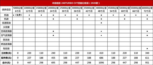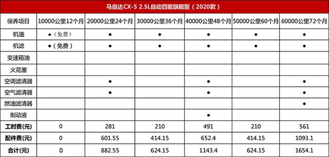 保养费用明细对比: