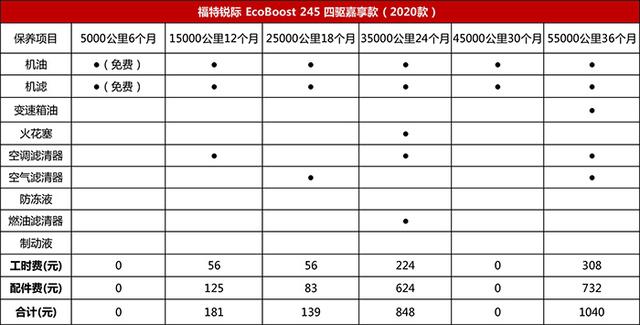 可能是受近年整个品牌销量数据的打击,福特在保养环节上可谓花费了大心思,推出了很多优惠。除常规的首保免费外,锐际还享受3年6次的免费基础保养,只不过按厂家的要求是三年内要把6次基础保养要用完。这六次的基础保养总费用是3488元,可以说福特这优惠是真金白银的,这也使得福特锐际成为通常六台车中6万公里保养周期内收费最低的车型,而且大幅领先对手。