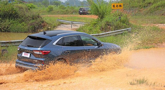 万万没想到,很公路化的福特锐际在越野环节排在了第二名,不仅在座的各位观众没想到,我们也没想到。当锐际选择越野驾驶模式,ESP会自动关闭,这一点比途观L智能,而且越野模式下变速箱会尽量少换挡、保持发动机转速,这也让涡轮迟滞尽量不影响你的驾驶体验。