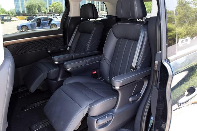 第二排使用了两个独立的头等舱豪华座椅,高配车型配有二排座椅高中低三种模式的加热、通风、按摩功能以及二排座椅电动腿托与后排屏幕等,可以说对第二排乘客的乘坐舒适性照顾的还是比较到位。