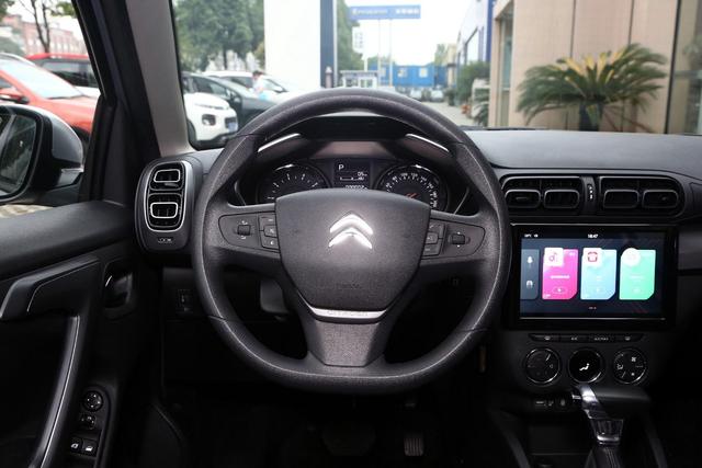 全系车均为塑料材质方向盘,考虑到级别和售价,也倒是可以接受,两侧的多功能按键可控制音量、行车电脑、蓝牙电话等常用功能,方向盘上依然是熟悉的雪铁龙品牌Logo。