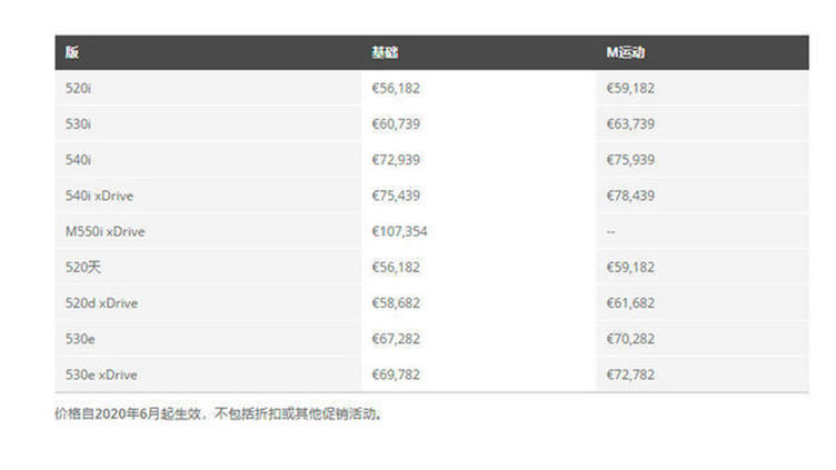 近日,海外媒体曝光了宝马新款5系的海外售价信息,新车起售价为56,182欧元(约为46万人民币),新车除了推出燃油版车型外还将推出插电式混合动力版车型。