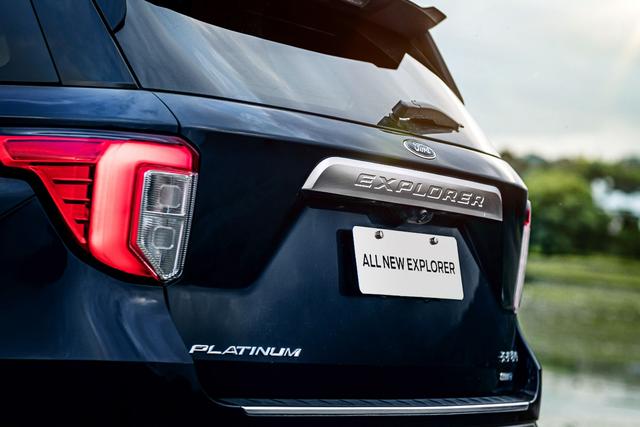 尾部通过线条的运用,车尾的立体感进一步加强。C字尾灯组也较为精致,与"大块头"的车身形成反差,富有棱角的设计依然符合硬朗的定位。梯形牌照区域上方采用了一个大面积的镀铬装饰条,并在上面印有"Explorer"英文字样。