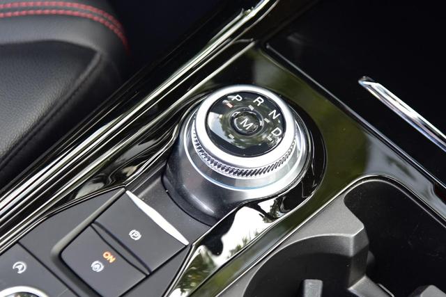 而在细节上,普通铂金版与ST Line版本也有一些差别,比如中控台和方向盘上的饰板,铂金版为木纹装饰,配图的ST Line版本则使用的是碳纤维纹路饰条点缀,且ST Line版车型的缝线也均为红色,视觉效果更加运动。