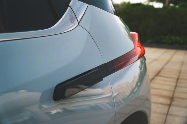 在侧面的设计上,Aion V相对于Aion LX设计更加年轻化。充满野性的"钢之骨"腰线与前脸配合到位,以及熏黑C柱、D柱营造出的悬浮式车顶,还有被官方称为"寰宇刀锋"的尾灯,一直从车尾延伸到后车门,与后门把手相连,看起来也是相当有气势。